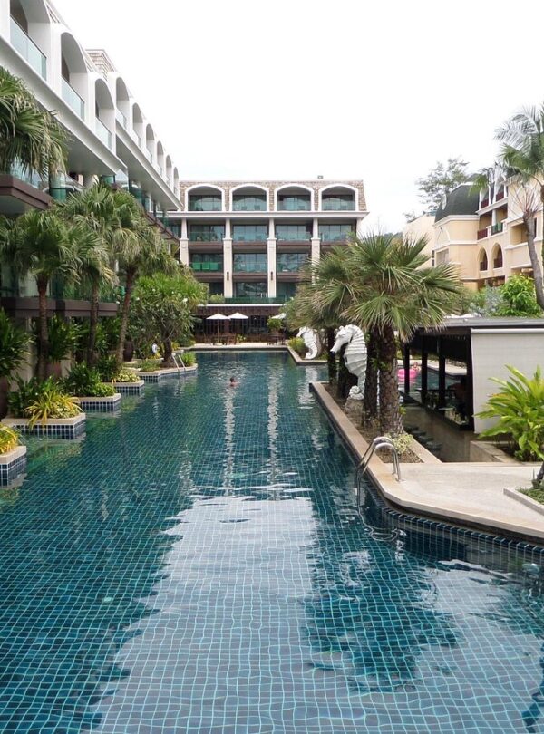 The hotel features spacious, elegantly furnished rooms and suites, many with direct pool access or beautiful views of the Andaman Sea. Guests can enjoy a wide range of facilities, including multiple swimming pools, a well-equipped fitness center, a luxury spa, bowling alley, and pool bars surrounded by lush gardens.
